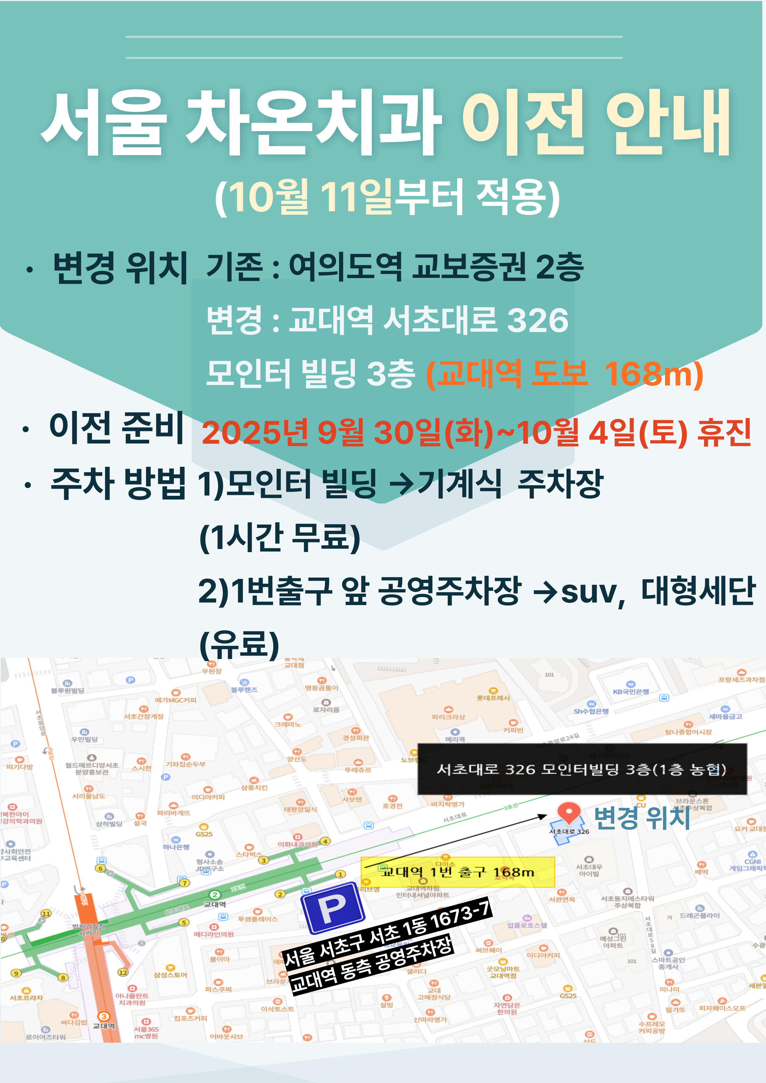 서울특별시 서초구 서초대로 326, 홀리스타빌딩 3F(교대역 1번 출구 도보 3분 거리)